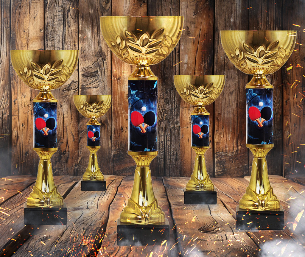 Különleges asztaliteniszes serleg hat méretben. Nagyobb mennyiség esetén kérjük telefonon vagy e-mail-ben érdeklődjön nálunk. A kezdőképen a sorozat legnagyobb méretű serlege látható.