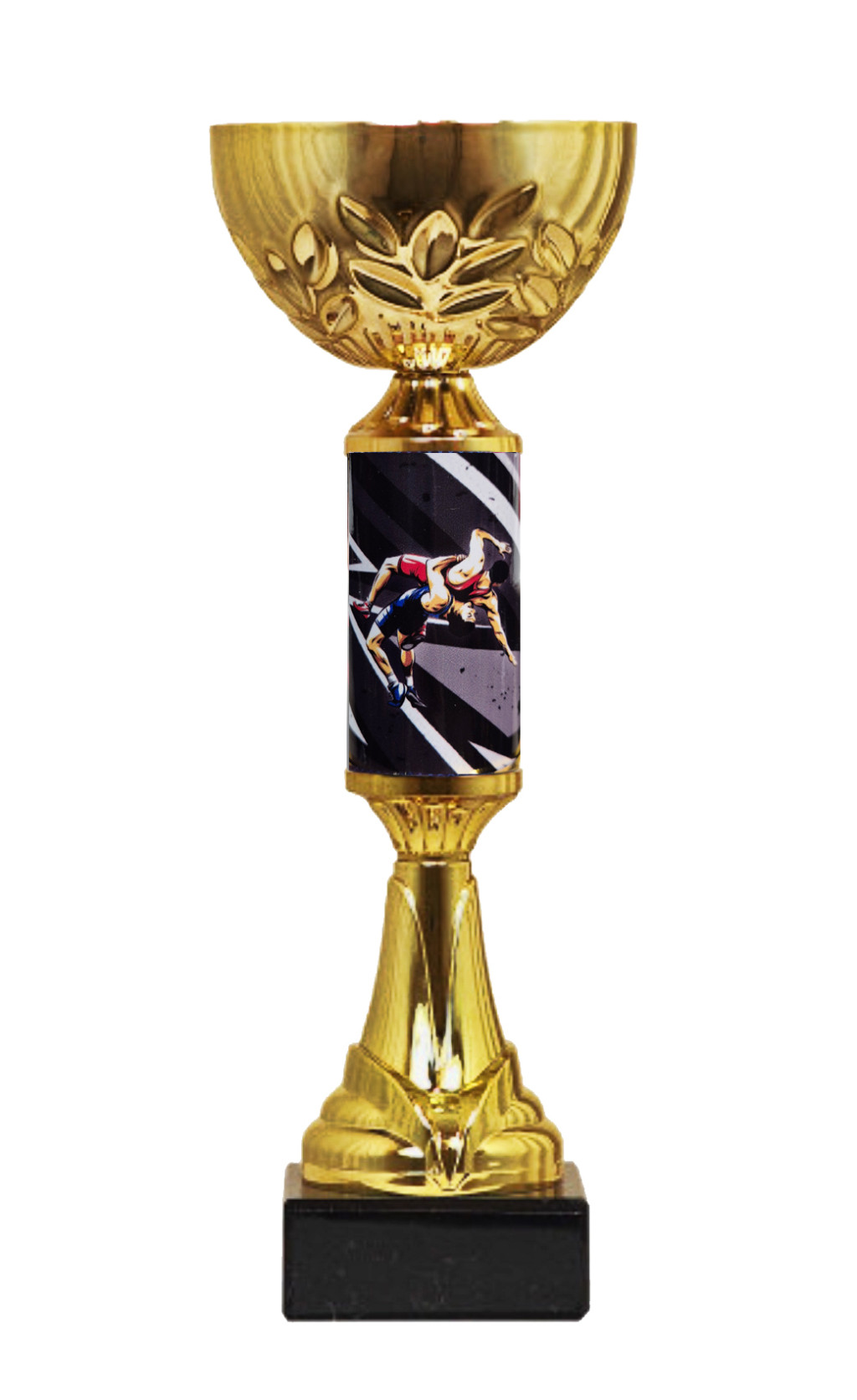 Különleges birkózó serleg, amely méltó módon tiszteli és díjazza a sportágban nyújtott teljesítményt. Letisztult, ünnepélyes formavilága és arányos kialakítása révén ez a trófea kiemelkedő választás minden birkózó versenyhez, kupa-díjátadóhoz vagy sporteseményhez.