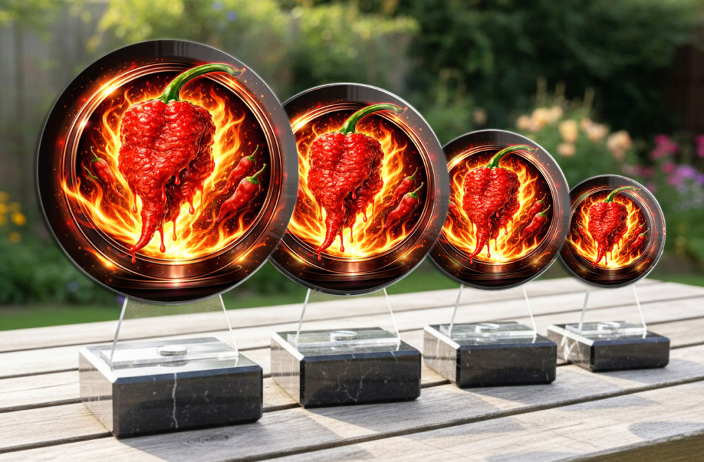 Különleges plexi díj, amely igazi figyelemfelkeltő trófea minden chili evő verseny és chilifőző verseny számára. Letisztult, modern kialakításával és átlátszó plexi anyagával elegáns, mégis látványos megjelenést kölcsönöz, így a győztesek büszkén állíthatják ki.