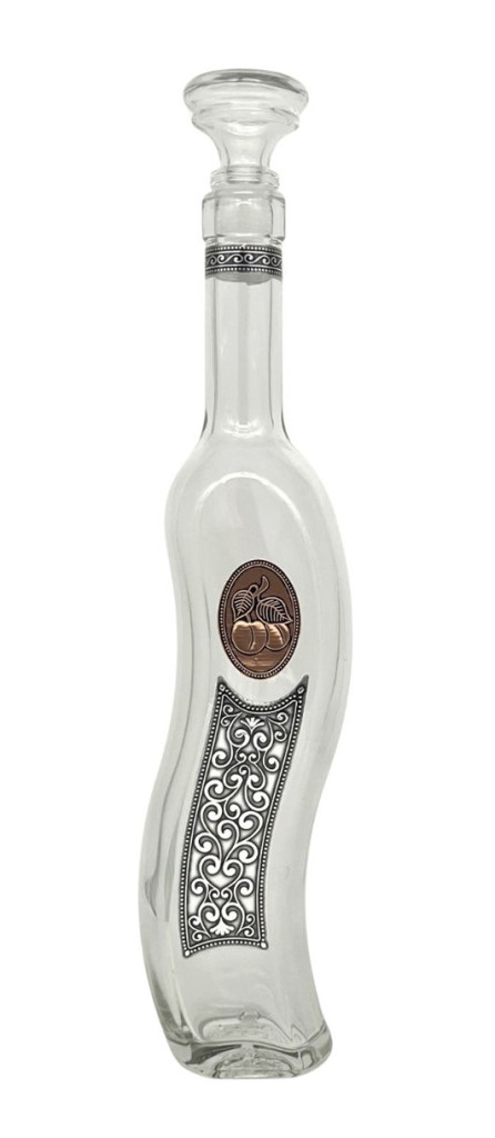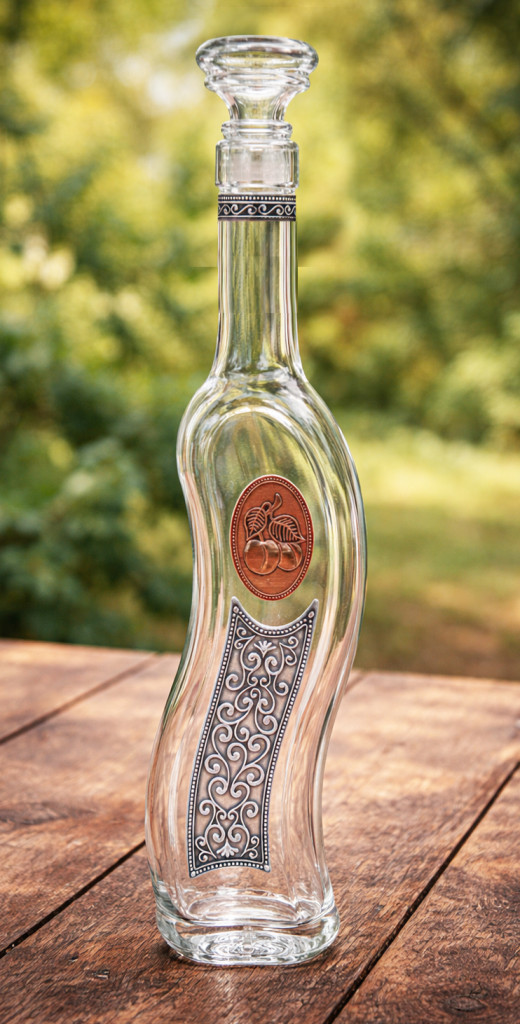 Látványos, egyedi formájú 500 ml-es díszes pálinkás üveg, amelyet elegáns ón hatású címkével díszítünk. A különleges megjelenésű üveg már önmagában emeli az alkalom fényét, de igazán személyessé tehető, ha egyedi gravírozást kérsz rá – névvel, logóval vagy saját grafikával, amely jellemzően az ajándékozott személyhez vagy az alkalomhoz kapcsolódik. A gravírozás kontrasztos és tartós, így hosszú távon is megőrzi szépségét.