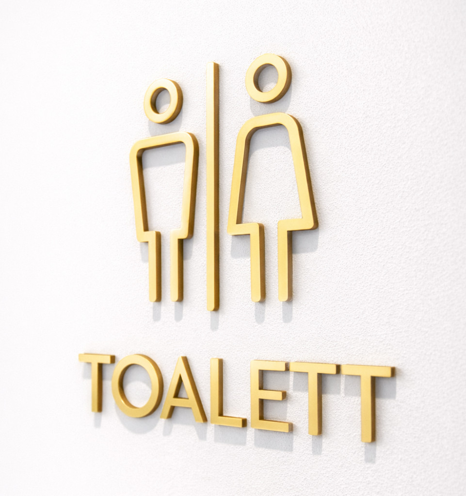 A jelölések különálló, lézervágott betűkből és piktogramokból készülnek, így a felirat valóban kiemelkedik a fal vagy az ajtó síkjából, elegáns, prémium hatást keltve.