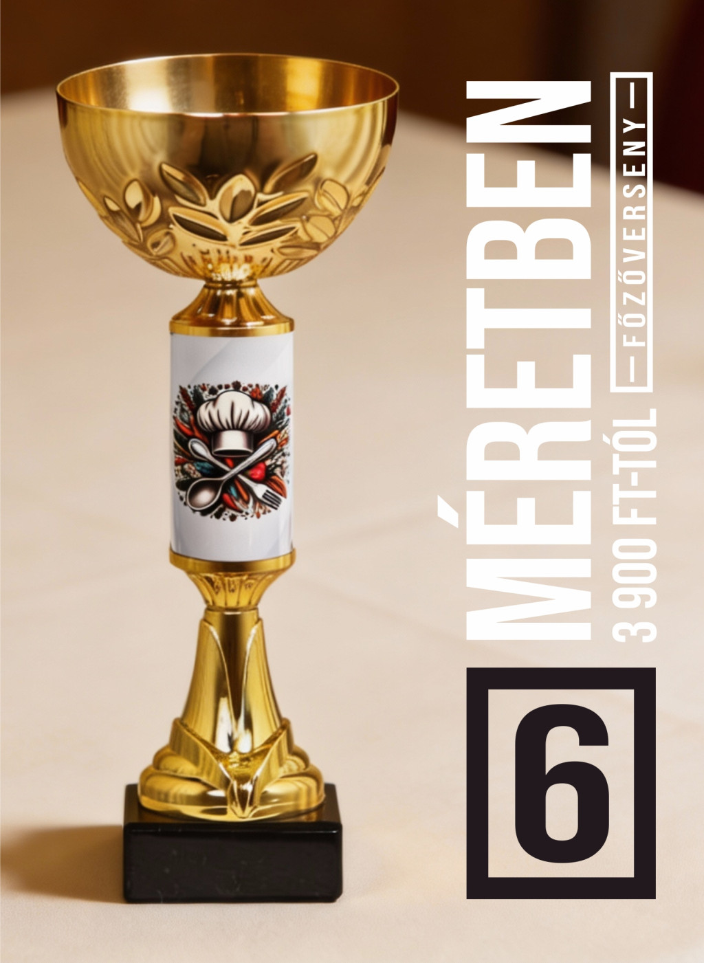 Főzőverseny serleg 6 méretben – egyedi, színes grafikával