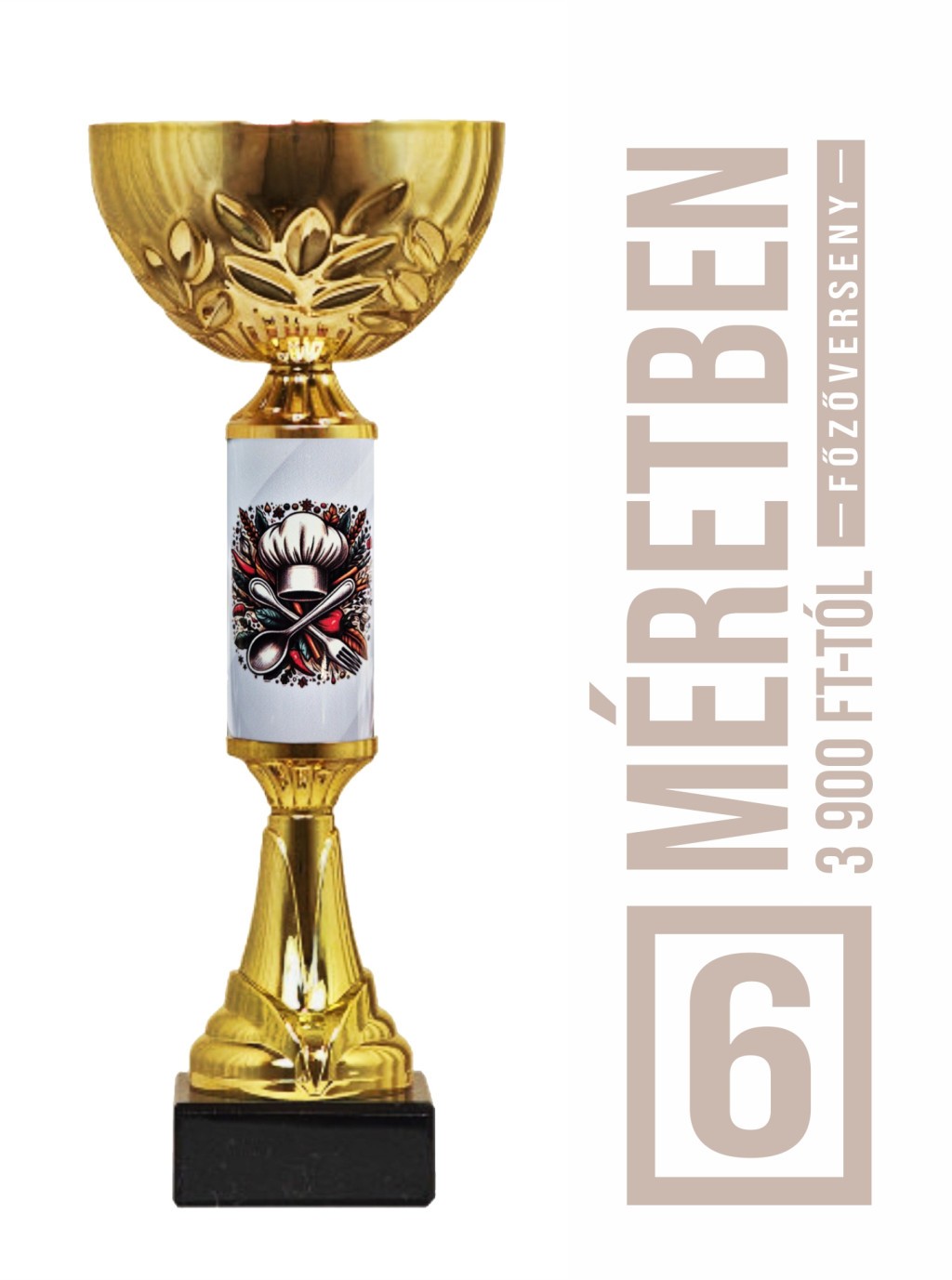 Főzőverseny serleg 6 méretben – egyedi, színes grafikával