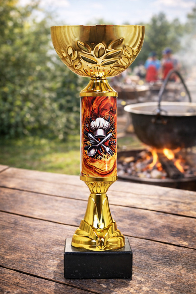 A főzőverseny kupa formavilága és arányai azt a gondolatot közvetítik, hogy a díjazás többet jelent egyszerű jutalomnál: valódi elismerés a kreativitásért, szakértelemért és versenyben nyújtott teljesítményért. Ez a serleg remekül illik bográcsos versenyekhez, főzőversenyekhez, gasztrofesztiválokhoz és minden olyan rendezvényhez, ahol a főzés és a közösségi élmény áll a középpontban.