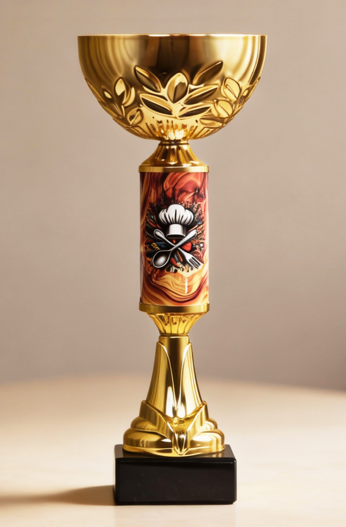 Főzőverseny kupa kategóriánkban ez a serleg ideális választás, ha egy látványos, tiszteletet sugárzó díjat keresel a győztesek és résztvevők számára. 4 méretben elérhető.