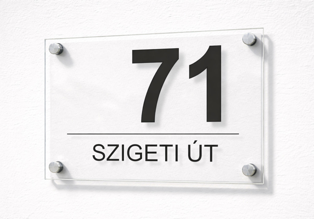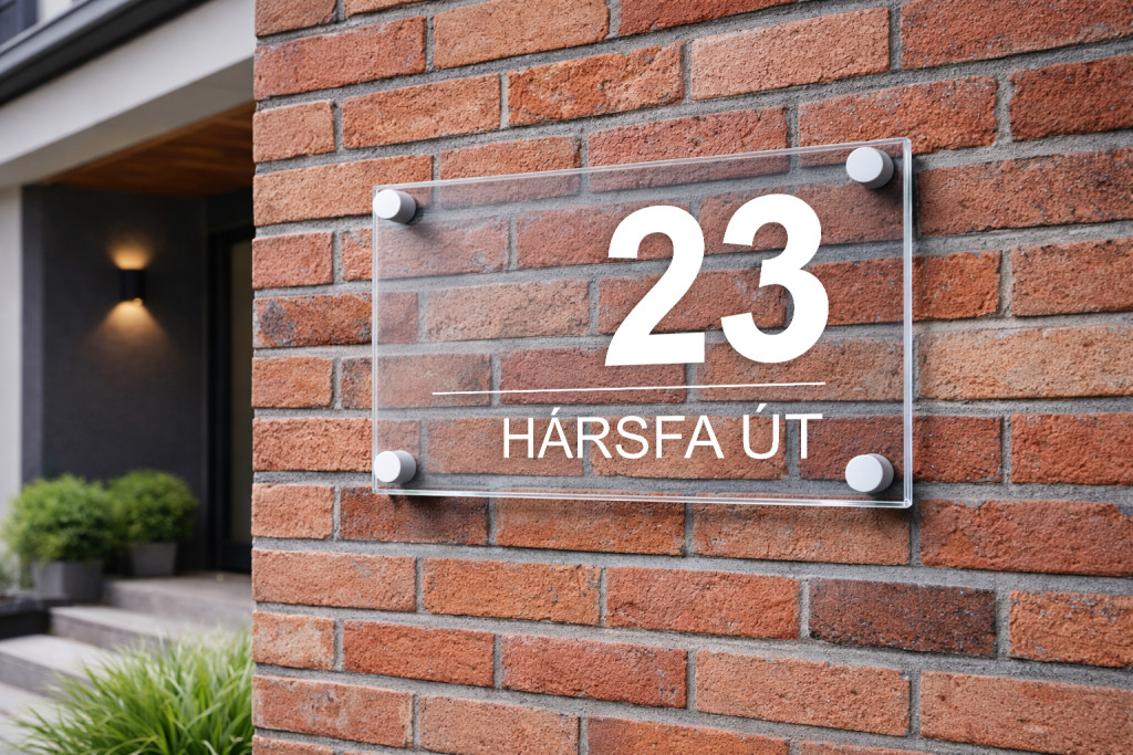 5 mm vastag víztiszta plexi házszámtábla – modern, elegáns megjelenés minden falra