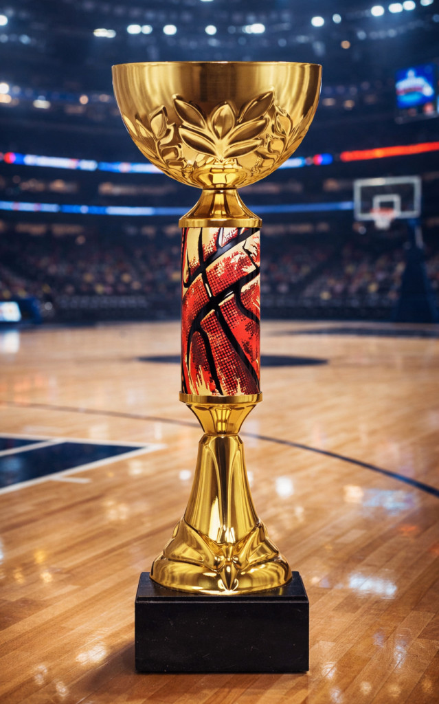 Különleges kosárlabda serleg 6 méretben elérhető kivitelben, amely ideális választás iskolai tornákhoz, egyesületi bajnokságokhoz, kupasorozatokhoz és utánpótlás versenyekhez egyaránt. Arányos formavilága és elegáns megjelenése méltó díja lehet bármilyen kosárlabda rendezvénynek.