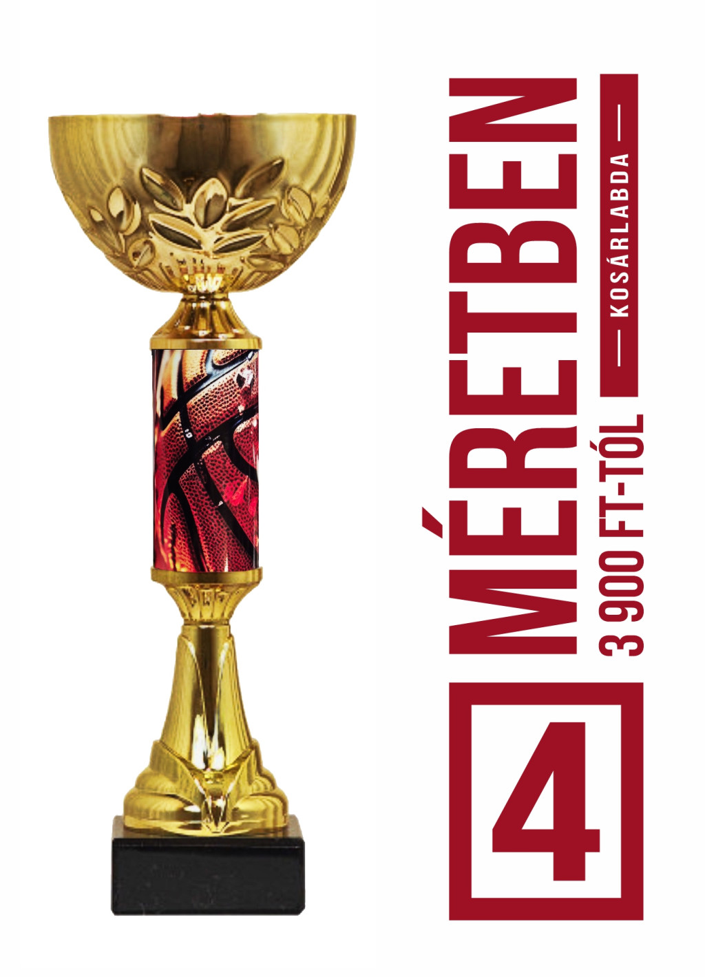 A kosárlabda serleg 4 különböző méretben érhető el, így könnyedén megtalálhatod a helyes díjat: