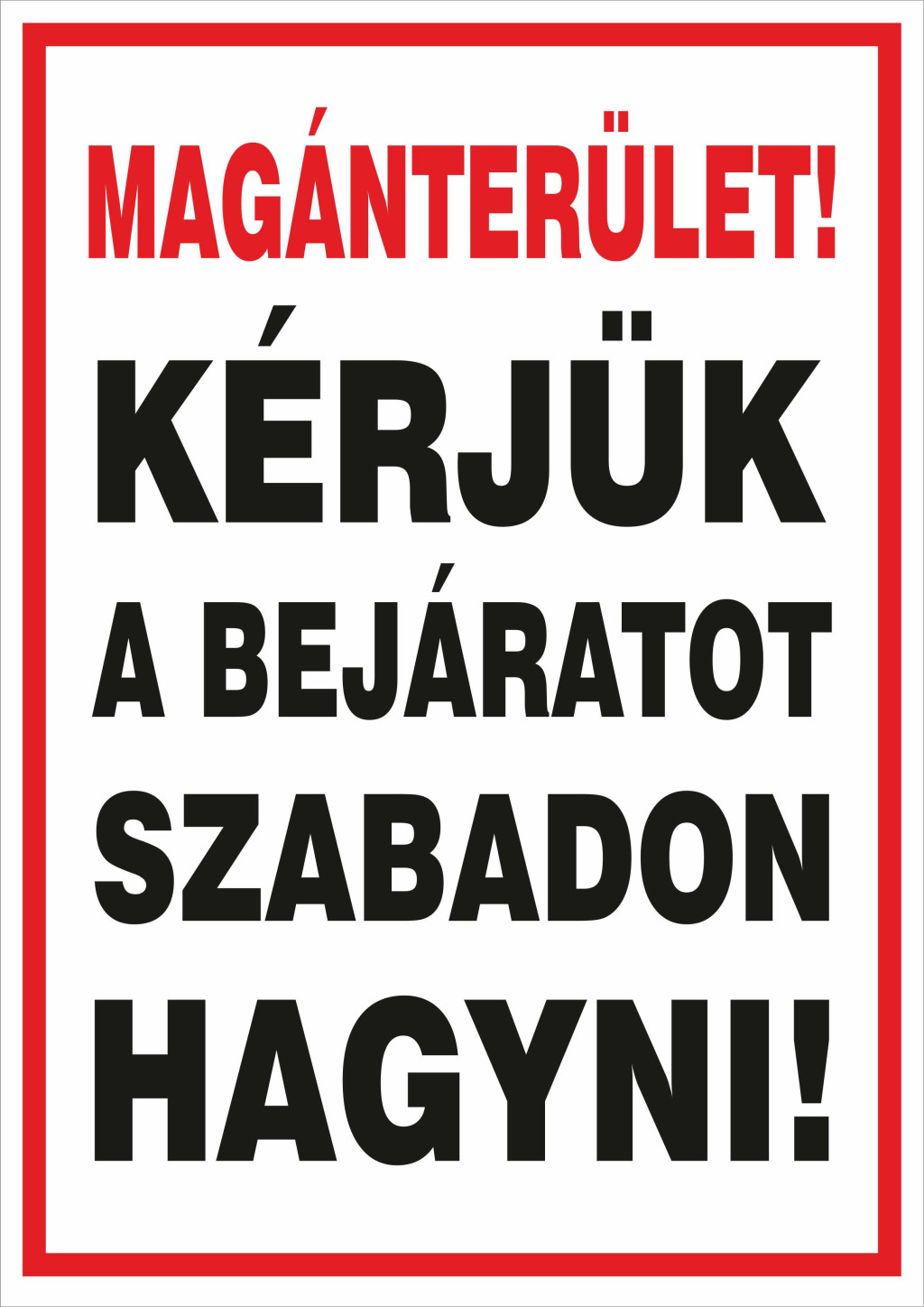 Magánterület! Kérjük a bejáratot szabadon hagyni tábla több méretben.