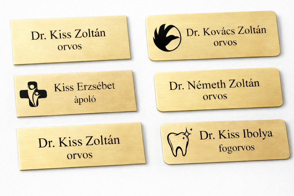 Ez az arany színű, gravírozott fémhatású névkitűző ideális választás: