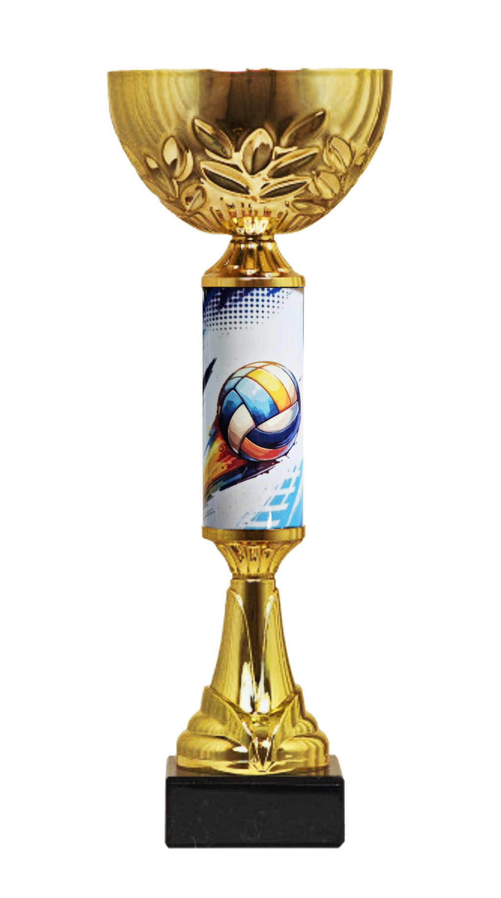 Különleges röplabdás serleg hat méretben. Nagyobb mennyiség esetén kérjük telefonon vagy e-mail-ben érdeklődjön nálunk. A kezdőképen a sorozat legnagyobb méretű serlege látható.