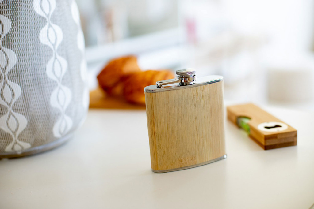 Ez a 175 ml-es rozsdamentes acél flaska bambusz borítással stílusos és praktikus hordozható társ minden alkalomra. A tartós anyag biztosítja, hogy a kedvenc italod mindig kéznél legyen – legyen szó kirándulásról, fesztiválról vagy hétvégi pihenésről.