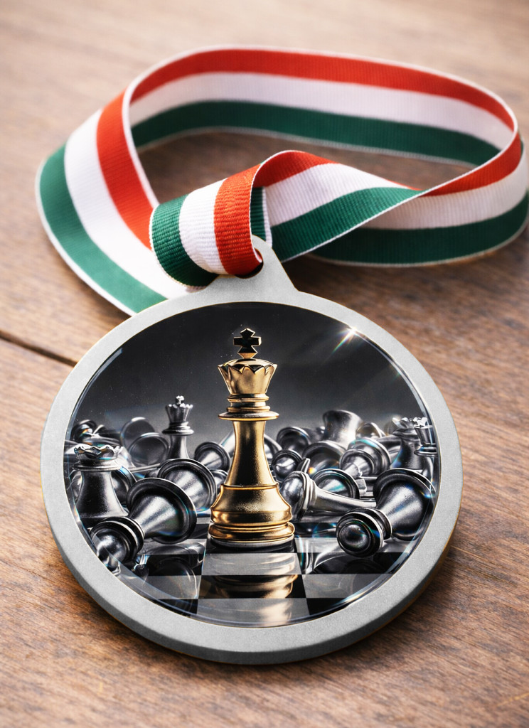 Ez a sakkos érem nemcsak praktikus, hanem vizuálisan is figyelemfelkeltő, és segít emlékezetessé tenni minden versenyt és eredményhirdetést.