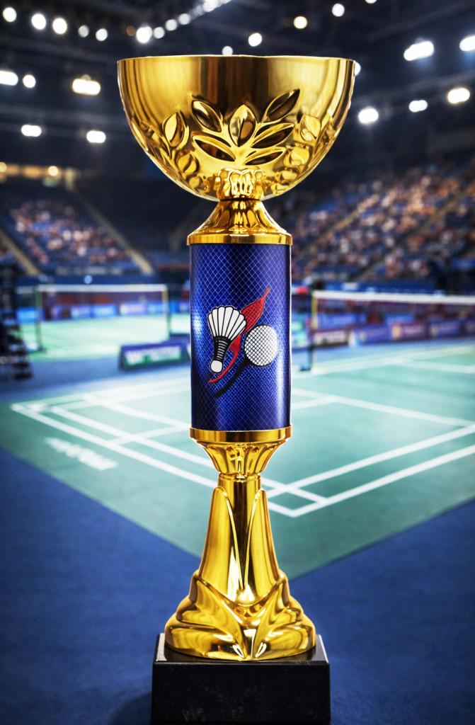 Különleges tollaslabdás serleg három méretben. Nagyobb mennyiség esetén kérjük telefonon vagy e-mail-ben érdeklődjön nálunk. A kezdőképen a sorozat legnagyobb méretű serlege látható.