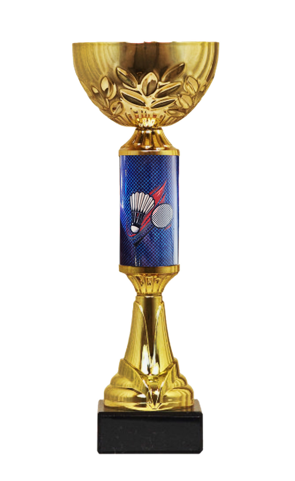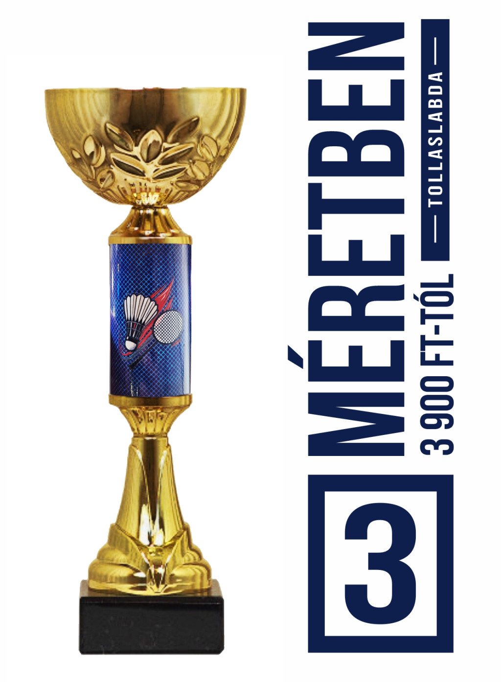 Különleges tollaslabdás serleg három méretben. Nagyobb mennyiség esetén kérjük telefonon vagy e-mail-ben érdeklődjön nálunk. A kezdőképen a sorozat legnagyobb méretű serlege látható.