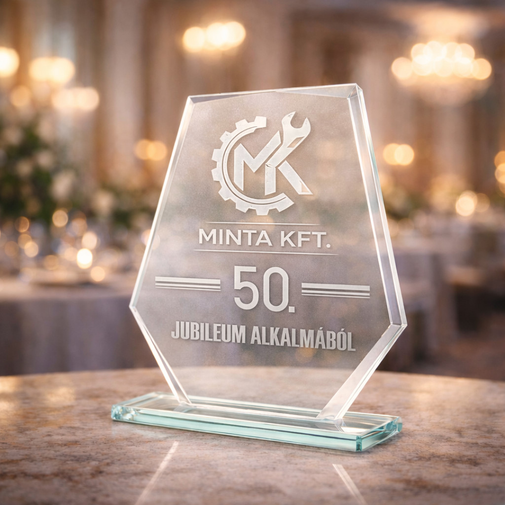 Ez az elegáns üveg díj méltó választás születésnap, évforduló, sportdíjazás, nyugdíjazás, jubileum vagy céges elismerés alkalmából. Letisztult, modern formavilága és minőségi kivitelezése időtálló emléket biztosít bármilyen különleges alkalomra. A nagy, sík felület ideális gravírozott feliratok, nevek, évszámok és egyedi üzenetek elhelyezésére, legyen szó személyes ajándékról vagy hivatalos díjról.