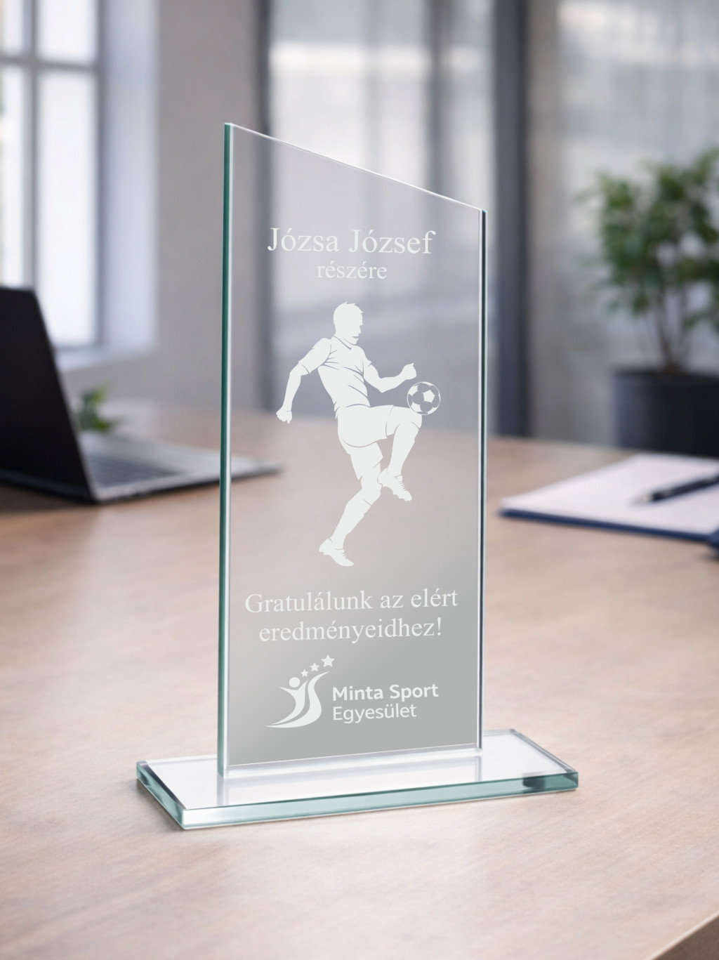 - Prémium minőségű, átlátszó üveg díj